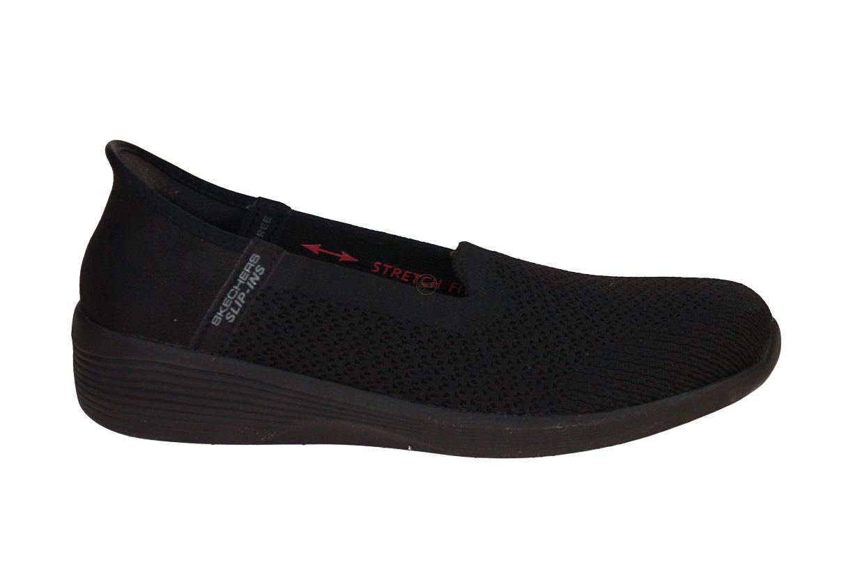 Deze zwart textielen damesschoen is van het merk Skechers. De schoen is wasmachine bestendig.