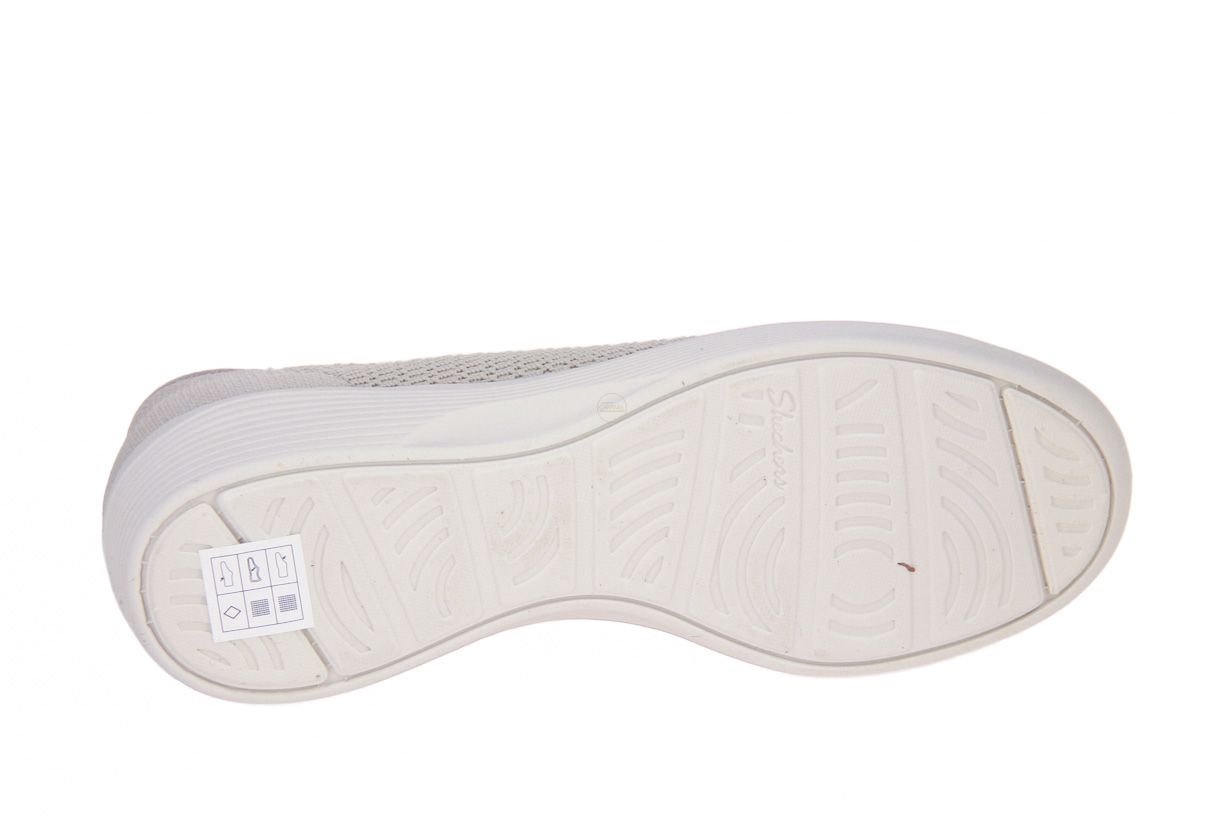 Deze beige textielen damesschoen is van het merk Skechers.