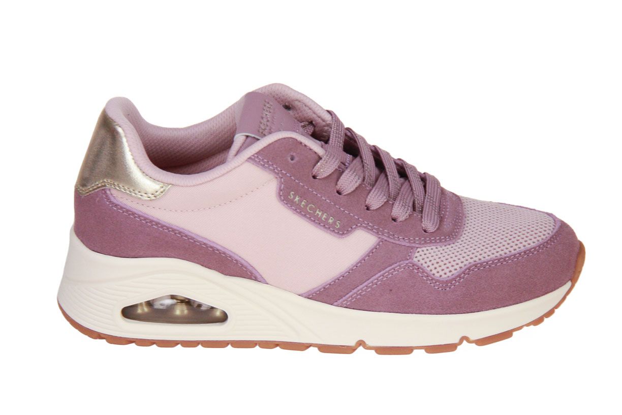 Deze roze textielen damesschoen is van het merk Skechers.