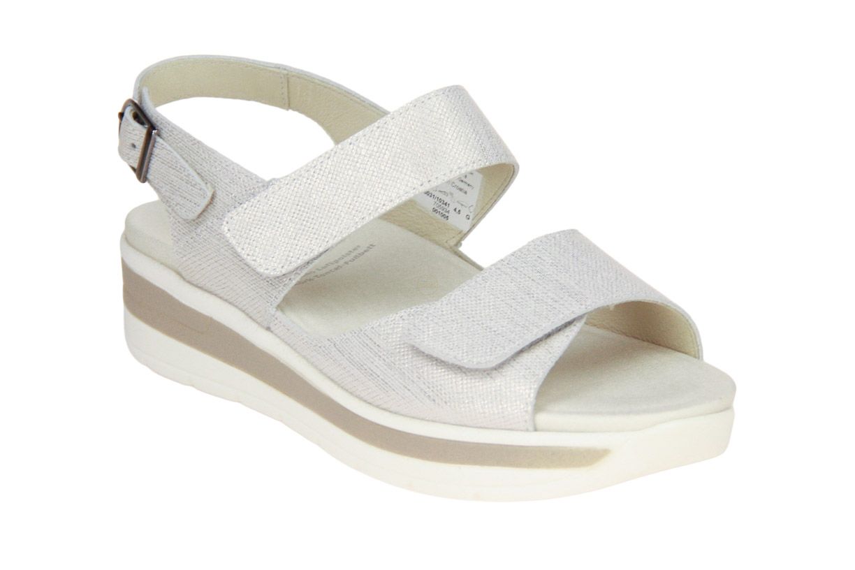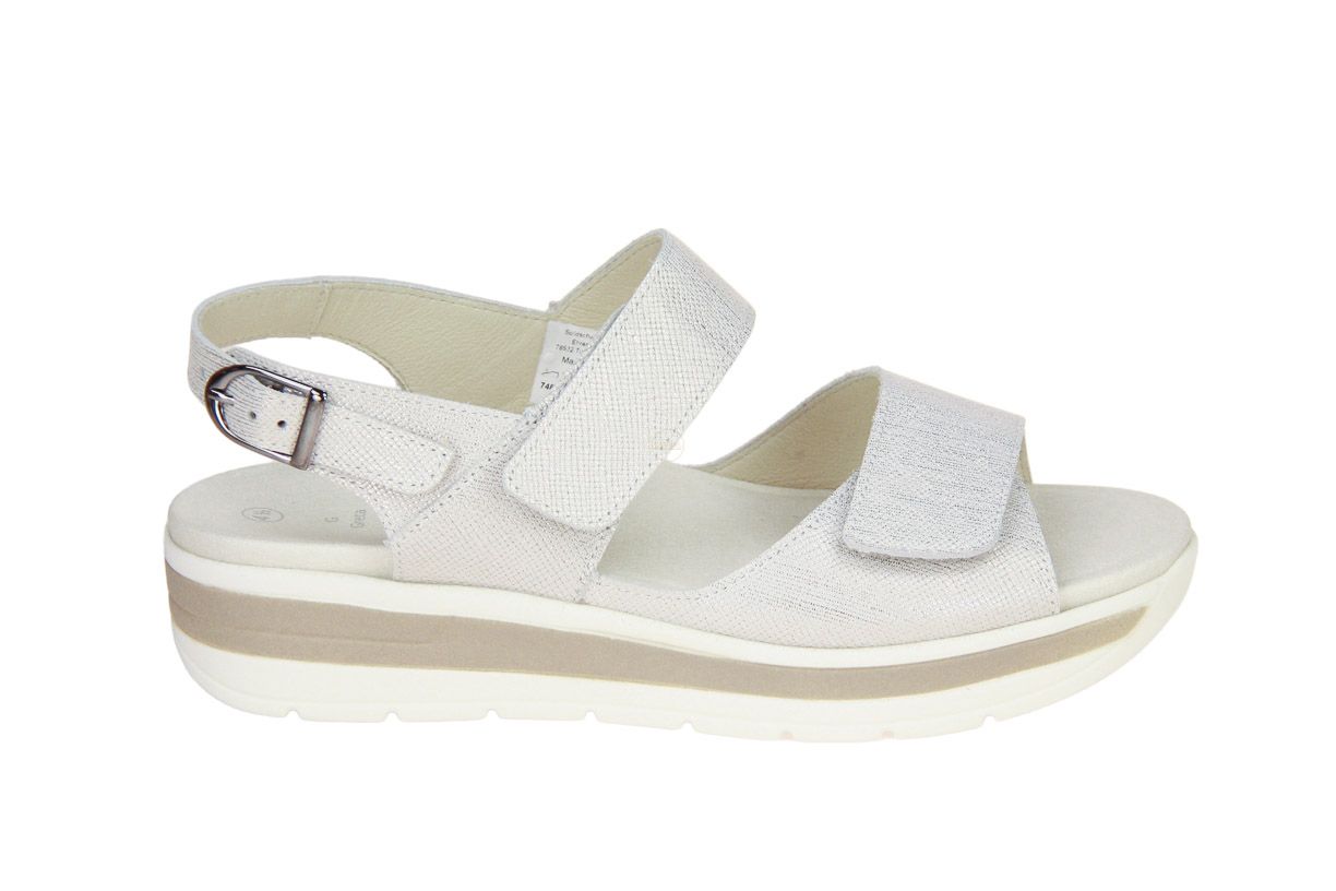 Deze wit lederen/textielen damessandaal is van het merk Solidus. De binnenzool is uitneembaar, ideaal voor steunzolen.