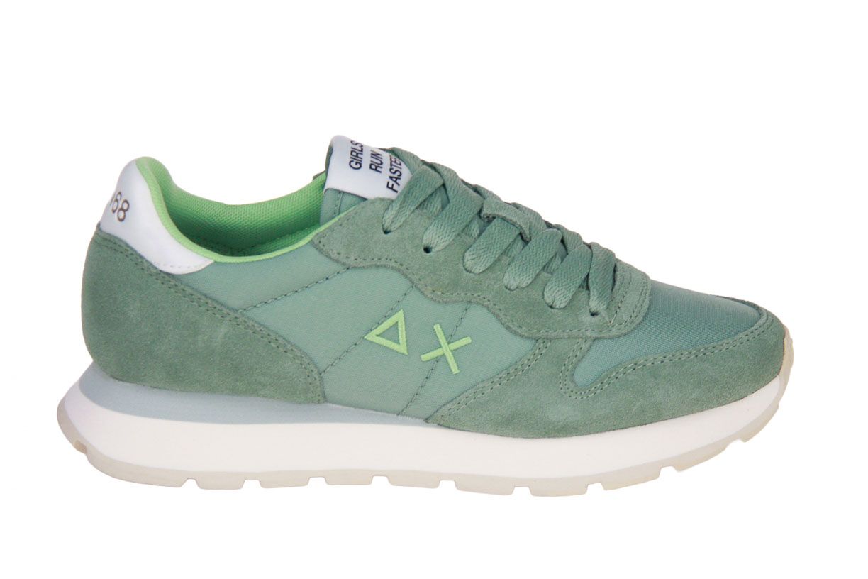 Deze groen suède damesschoen is van het merk SUN68. De binnenzool is uitneembaar, ideaal voor steunzolen.