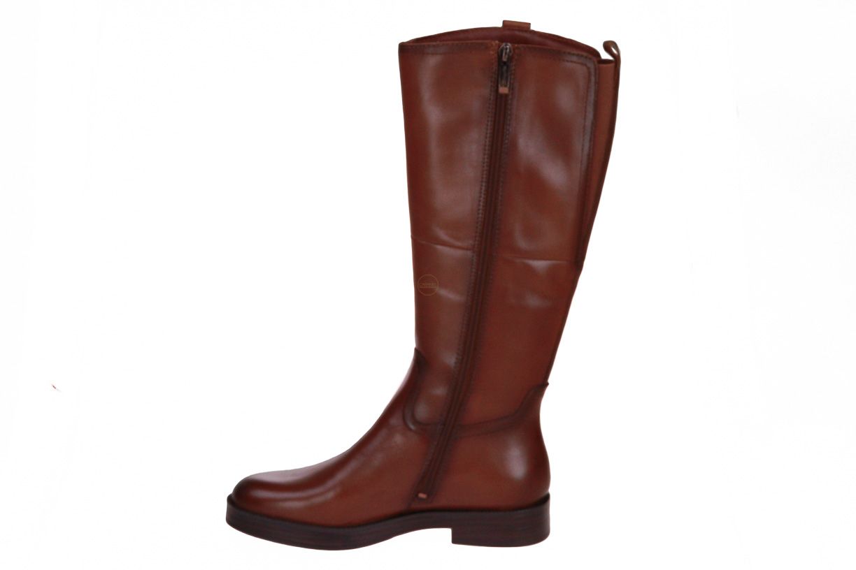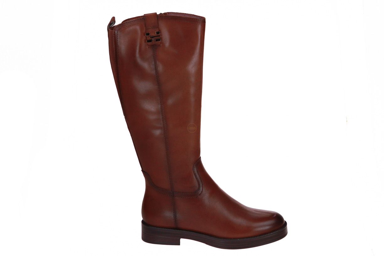 Deze cognac lederen lange dameslaars is van het merk Tamaris.