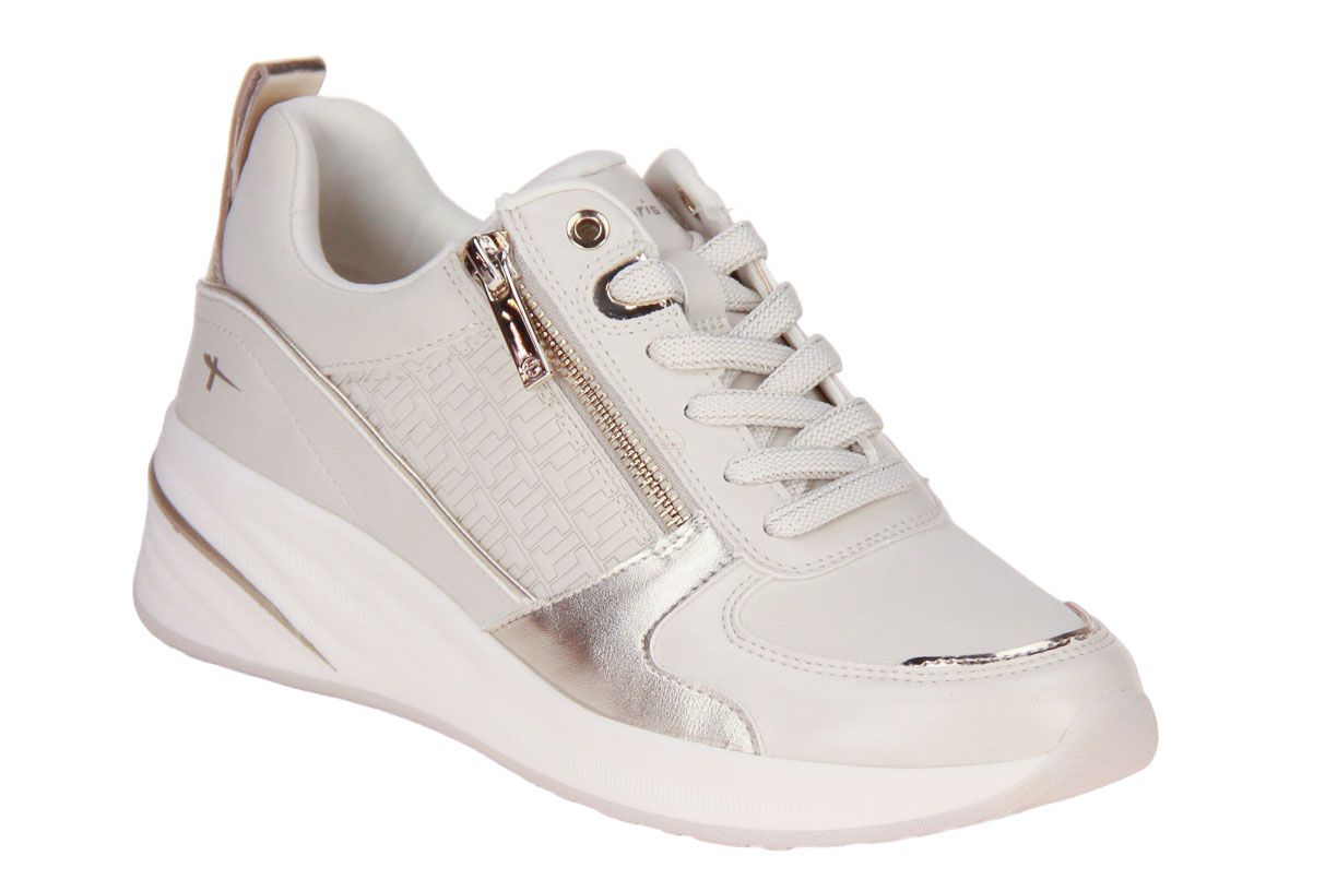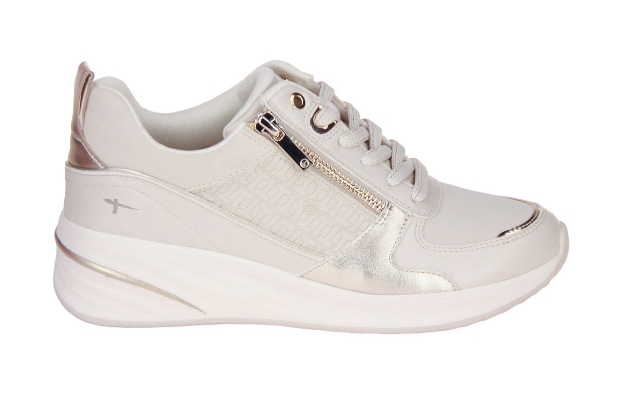 Deze lederen beige damesschoen is van het merk Tamaris. De binnenzool is uitneembaar, ideaal voor steunzolen.
