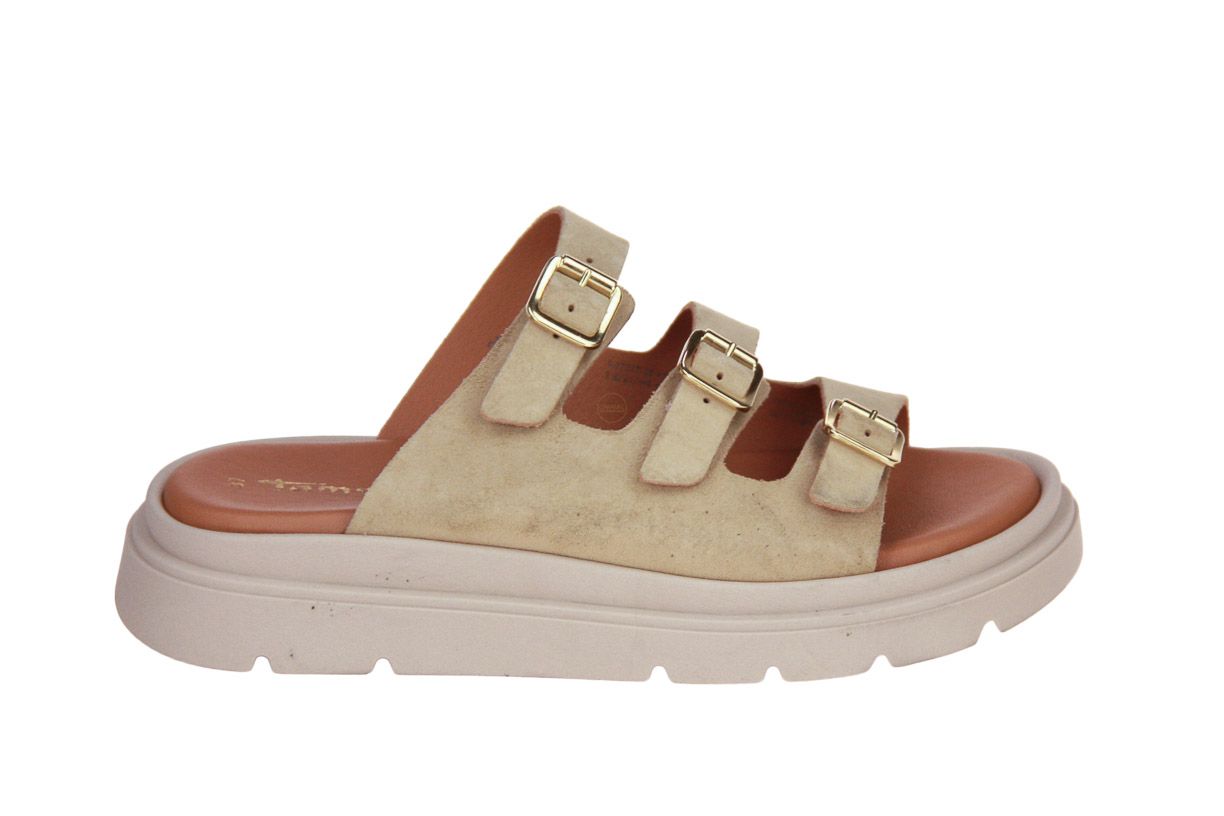 Deze beige nubuck damesschoen is van het merk Tamaris.