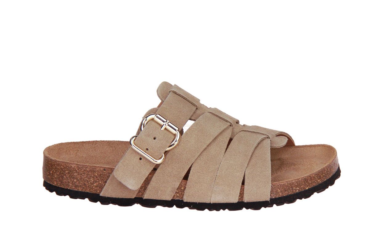 Deze beige nubuck damesslipper is van het merk Tamaris.