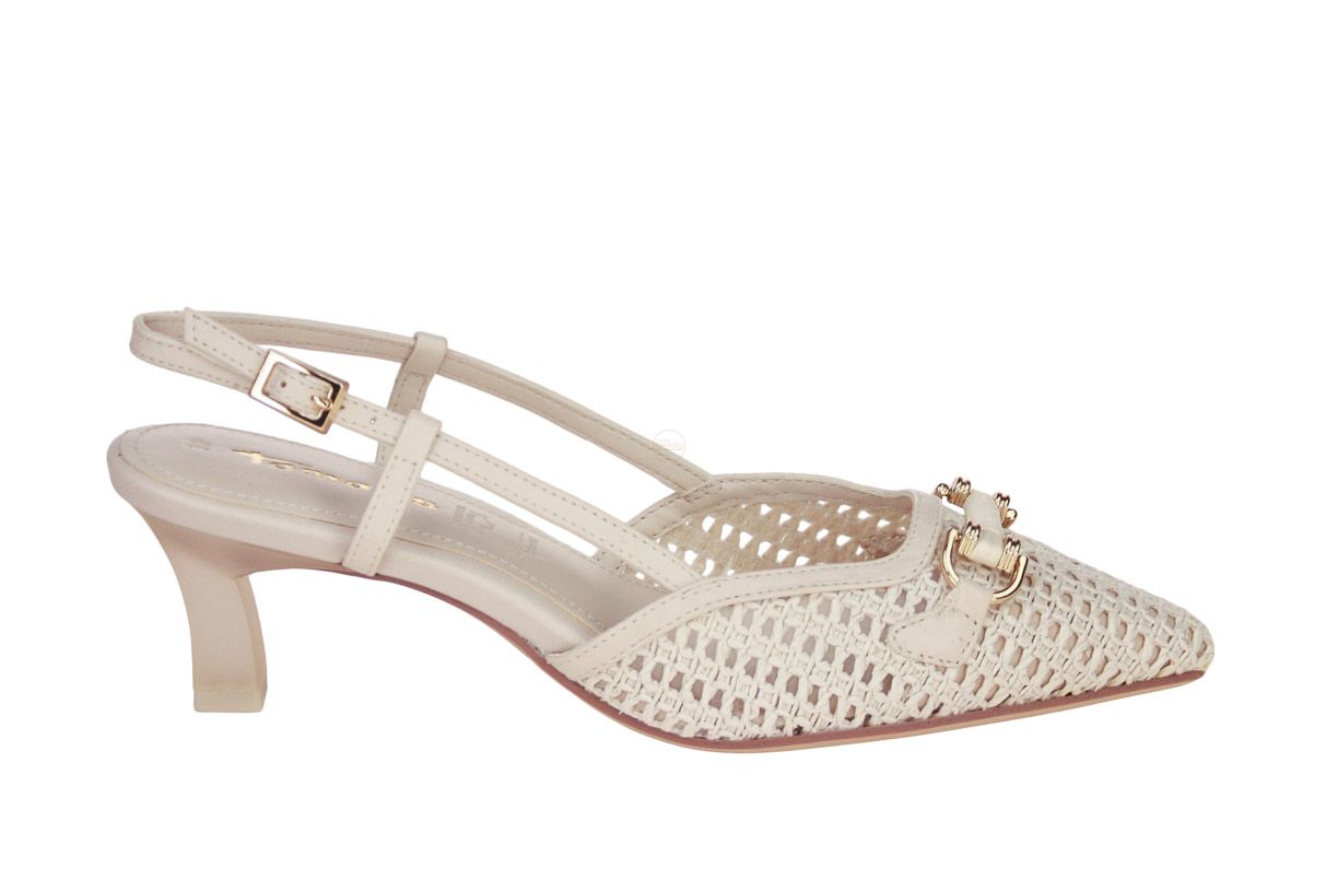 Deze offwhite lederen damesschoen is van het merk Tamaris.