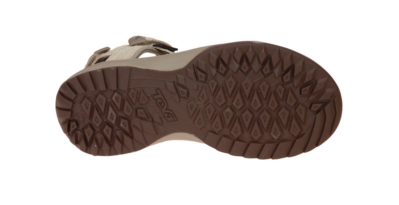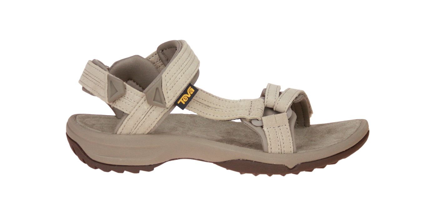 Beige suède damessandaal van het merk Teva.