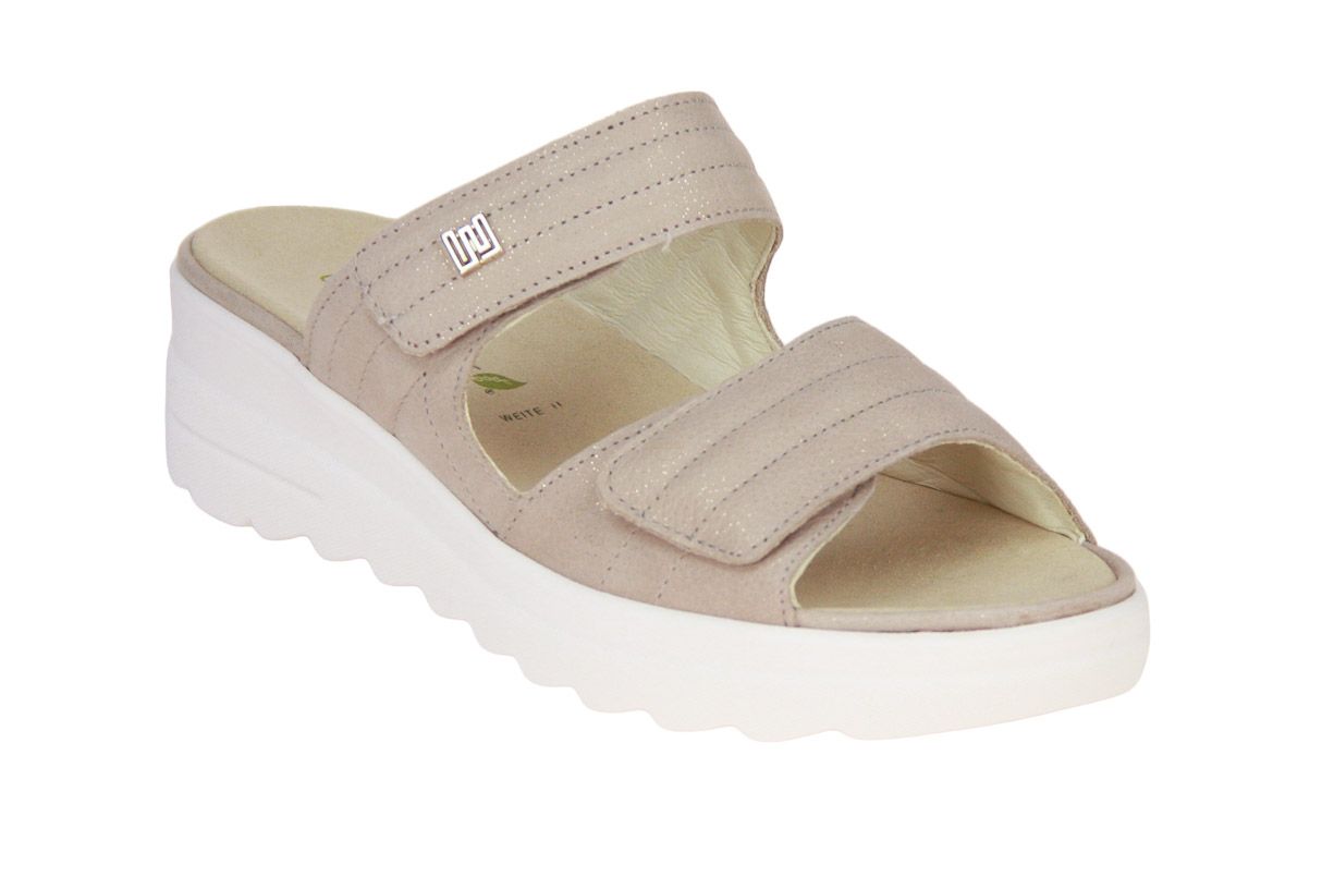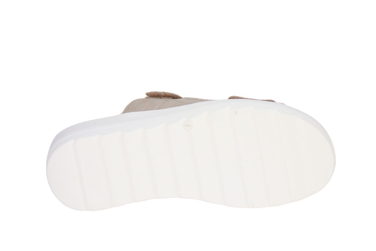 Deze beige lederen damesslipper is van het merk Waldläufer. De binnenzool is uitneembaar, ideaal voor steunzolen.