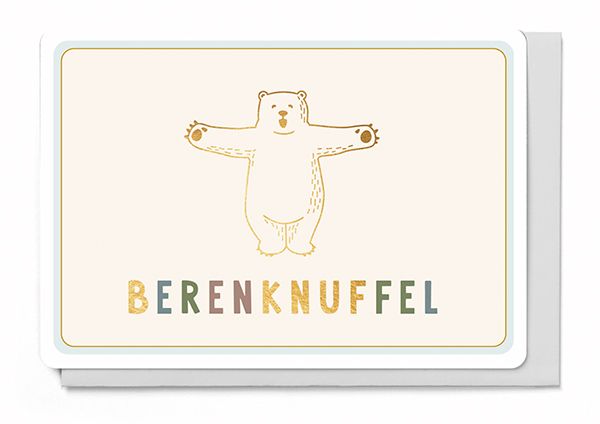 Dubbele wenskaart 12 X 17 cm - Afgewerkt met matte gouden foliedruk - Lichtgrijze envelop