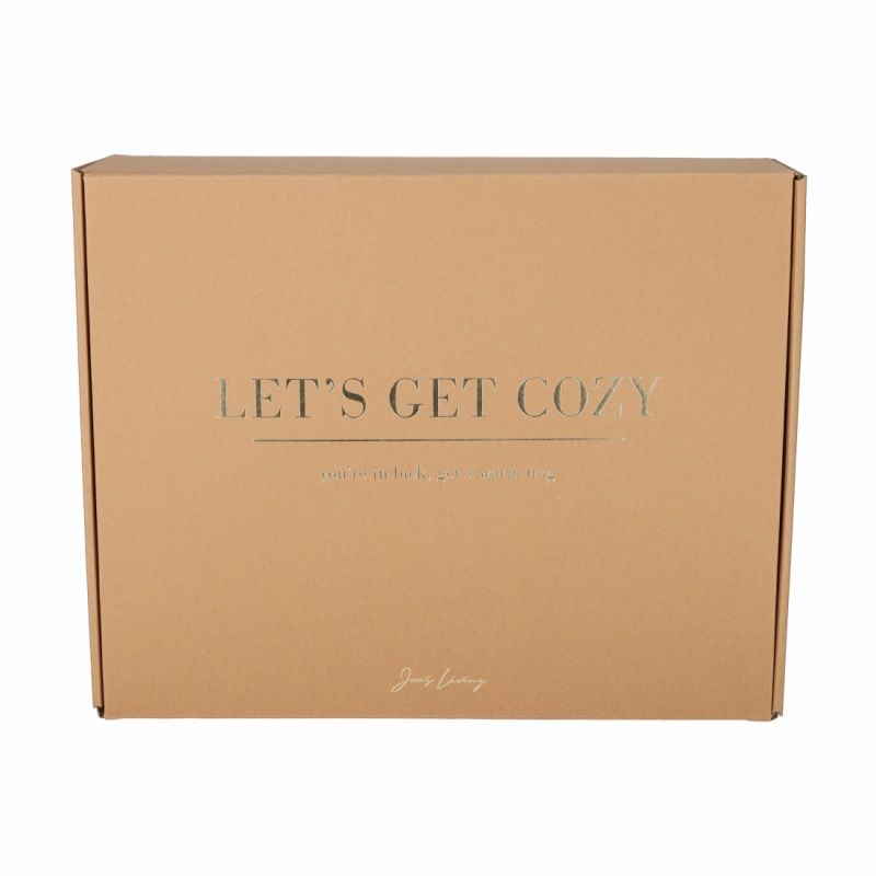 Deze luxe Giftset is hét perfecte cadeau voor de feestdagen of voor zomaar tussendoor. De set bestaat uit een heerlijk warm bouclé plaid, een warmtekruik met bijpassende bouclé hoes en twee mokken in retrostijlmet de tekst 'Let's get cozy'. De giftset is verpakt in een luxe geschenkdoos en klaar om cadeau te geven