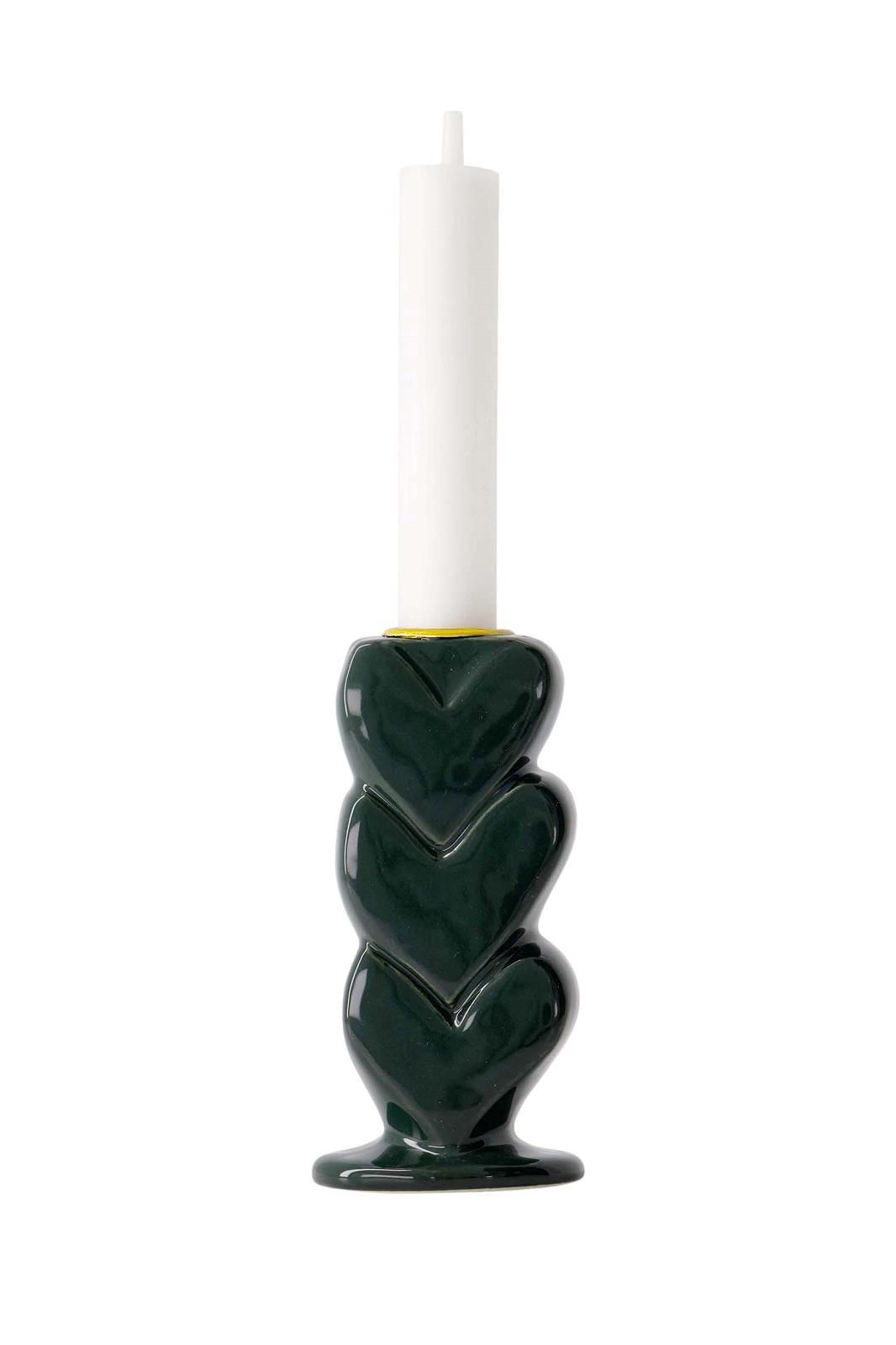 Zusss Kandelaar Keramiek Hartjes Donkergroen  (0502-0024/4001) - Caramel (Sint-Job-in-’t-Goor)