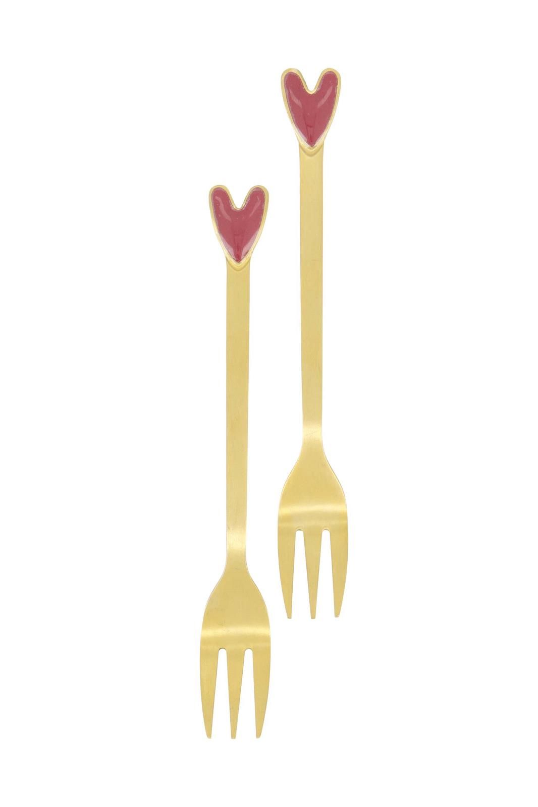 Zusss Set van 2 Vorkjes Hartje Goud/Rood  (0705-0015/9007) - Caramel (Sint-Job-in-’t-Goor)
