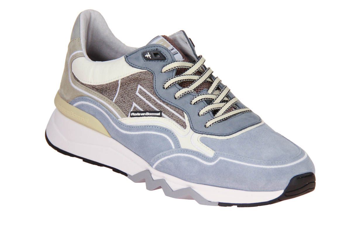 Deze licht blauw suède herenschoen is van het merk Floris van Bommel. De binnenzool is uitneembaar, ideaal voor steunzolen.