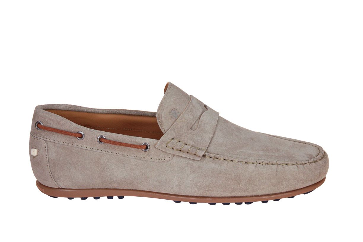 Deze licht grijs suède herenschoen is van het merk Floris van Bommel.