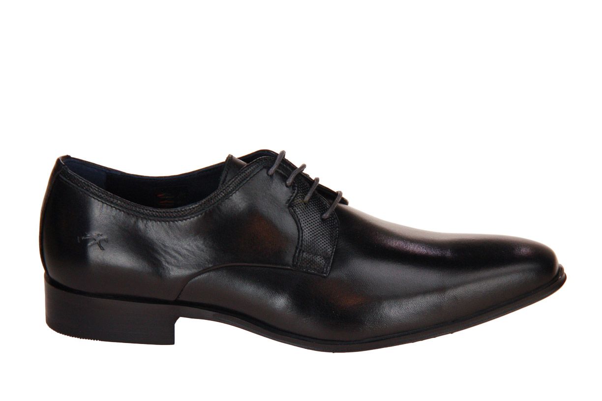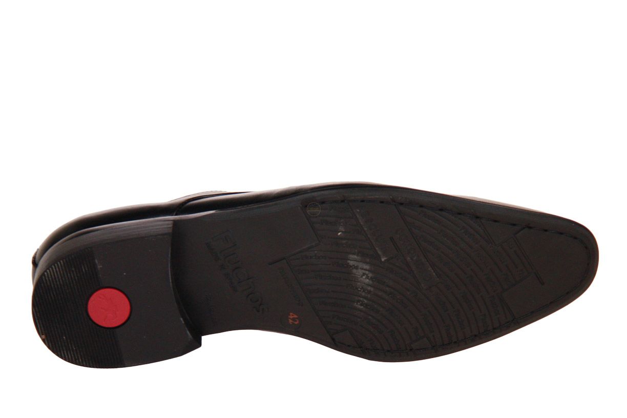 Deze zwart lederen herenschoen is van het merk Fluchos. De binnenzool is uitneembaar, ideaal voor steunzolen.