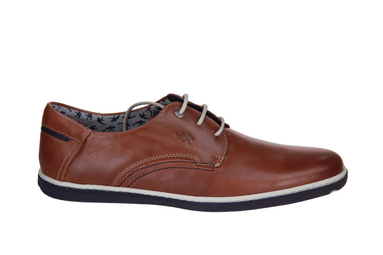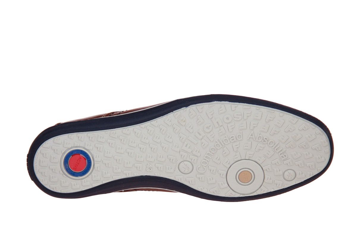 Deze cognac lederen herenschoen is van het merk Fluchos. De binnenzool is uitneembaar, ideaal voor steunzolen.