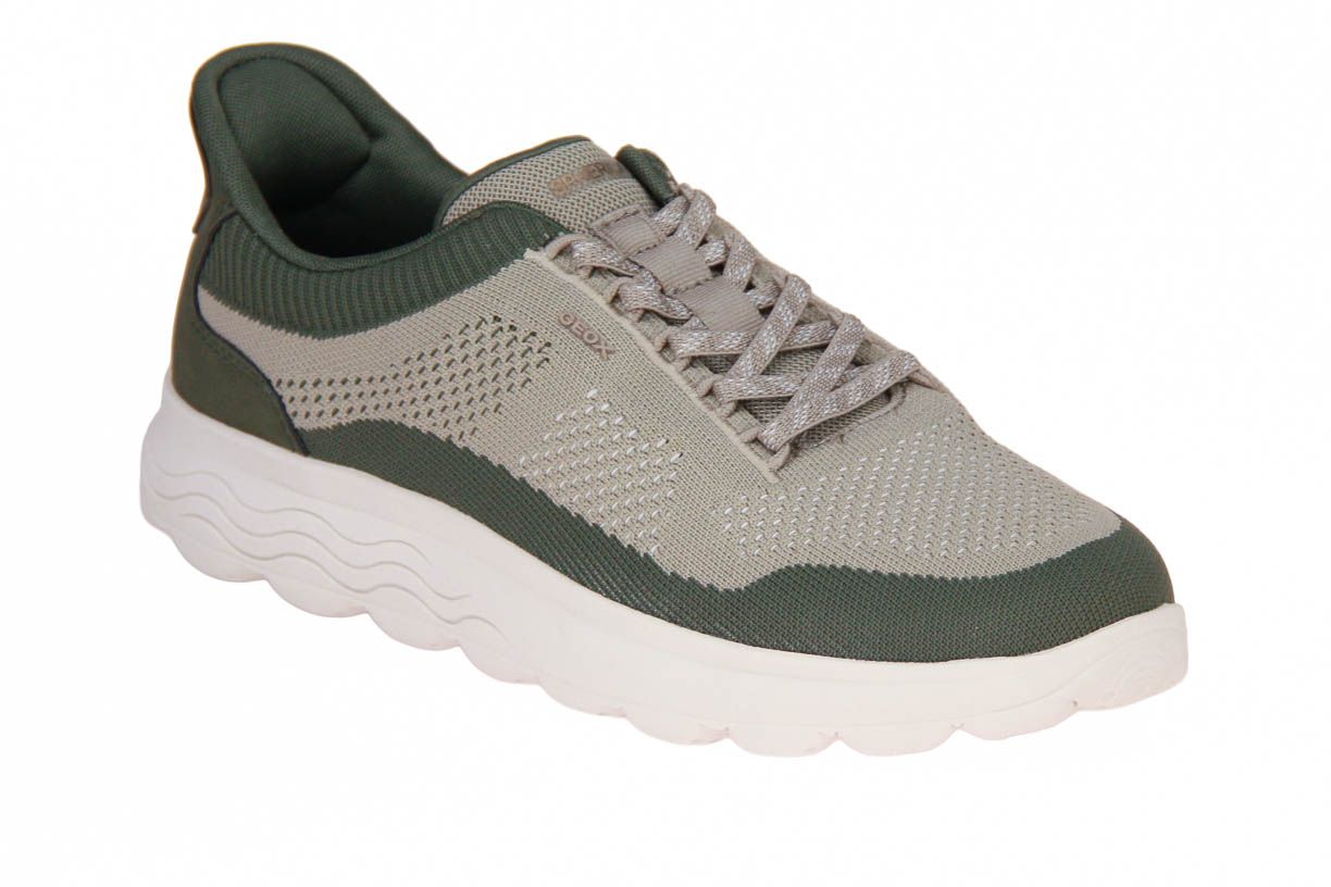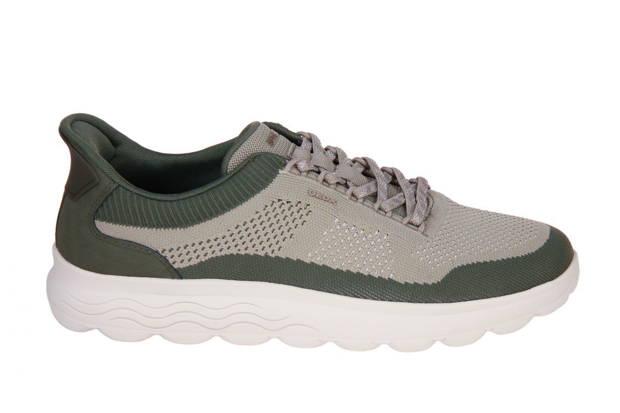 Deze kaki textielen herenschoen is van het merk Geox. De binnenzool is uitneembaar, ideaal voor steunzolen.