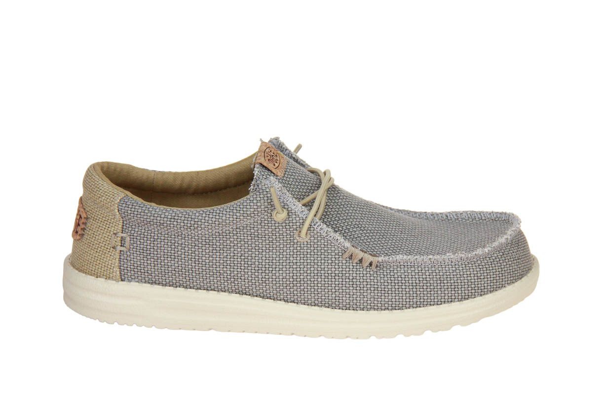 Deze grijs textielen herenschoen is van het merk Heydude. De binnenzool is uitneembaar, ideaal voor steunzolen.