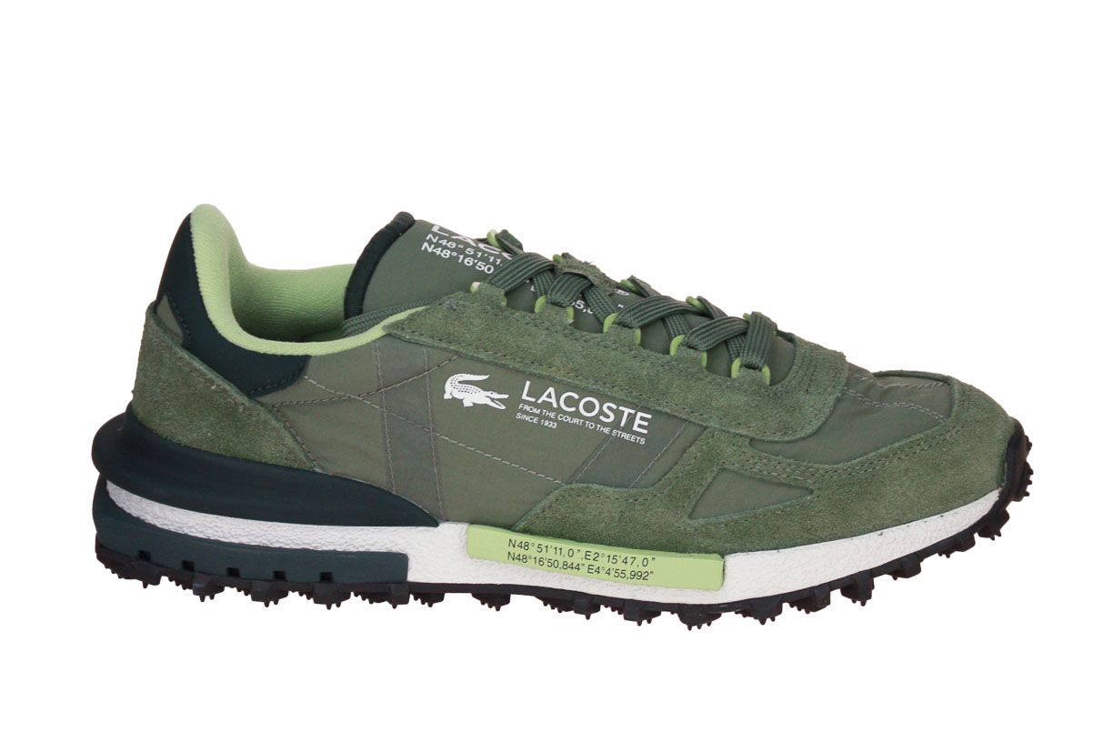 Deze kaki textielen herenschoen is van het merk Lacoste. De binnenzool is uitneembaar, ideaal voor steunzolen.