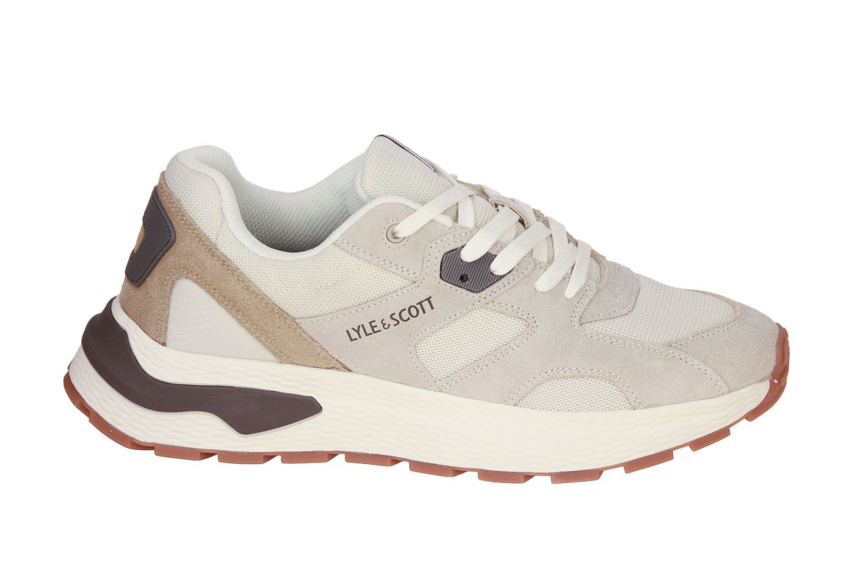 Deze beige suède herenschoen is van het merk Lyle & Scott.