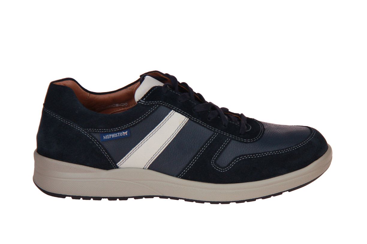 Deze blauw lederen herenschoen is van het merk Mephisto. De binnenzool is uitneembaar, ideaal voor steunzolen.