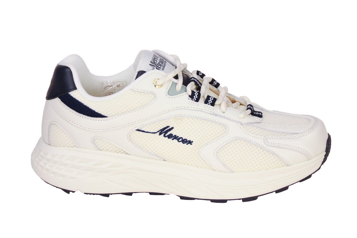 Deze lederen offwhite herenschoen is van het merk Mercer. De binnenzool is uitneembaar, ideaal voor steunzolen.