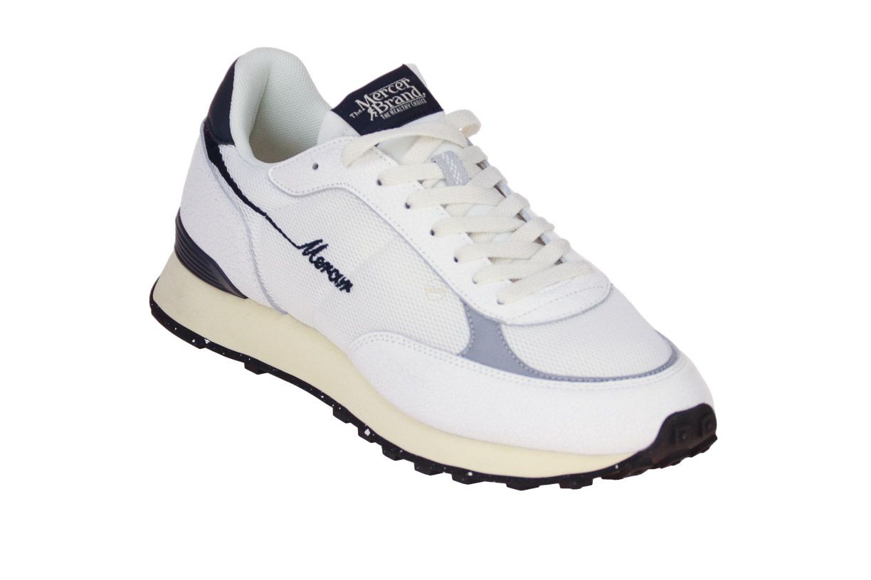 Deze wit textielen herenschoen is van het merk Mercer. De binnenzool is uitneembaar, ideaal voor steunzolen.