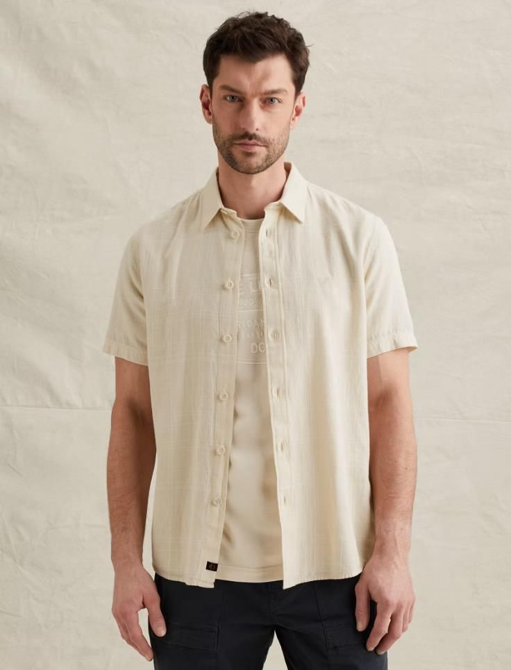 Short Sleeve Shirt Slubgrid Bone White