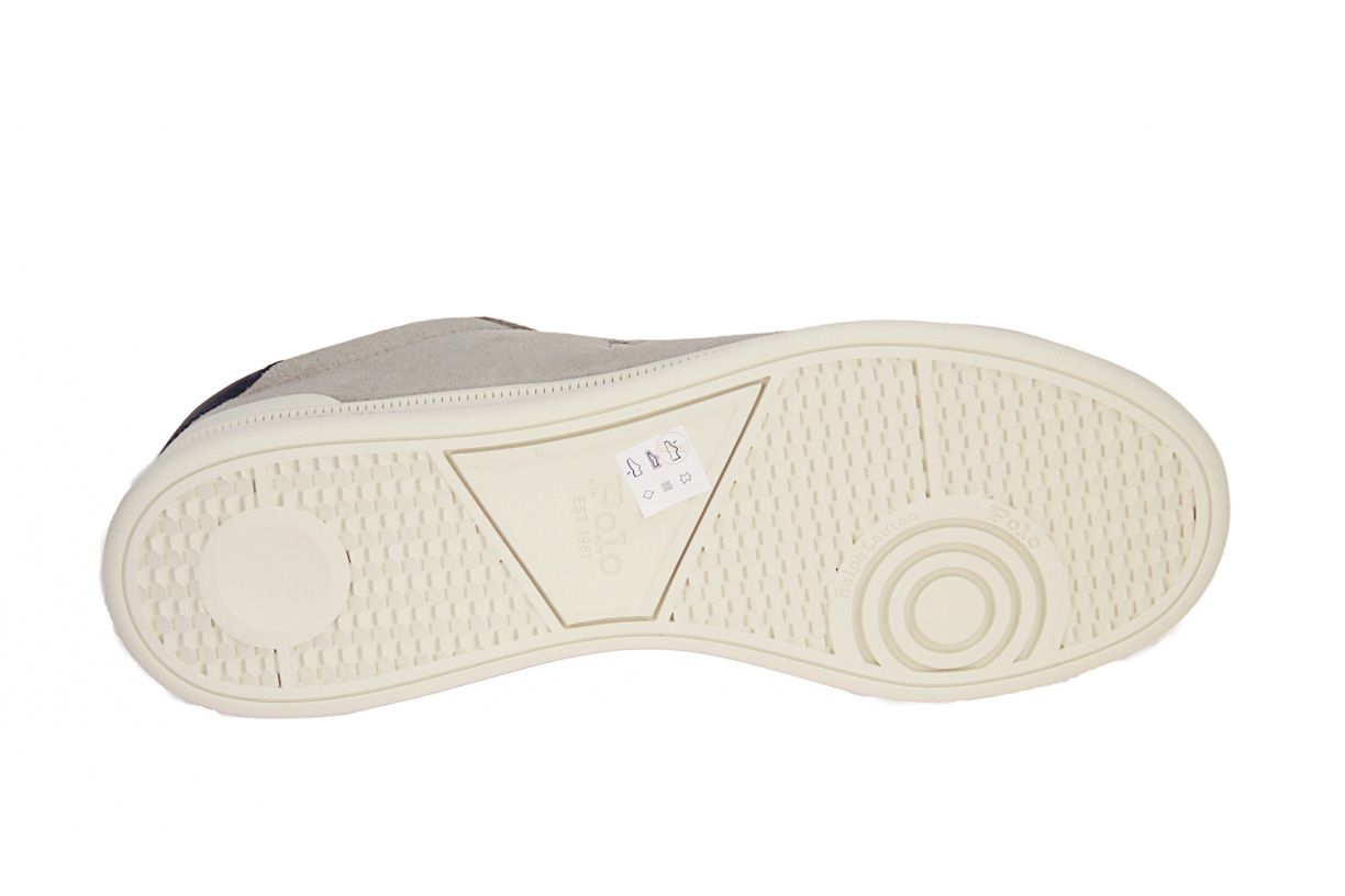 Deze beige suède herenschoen is van het merk Ralph Lauren Polo.