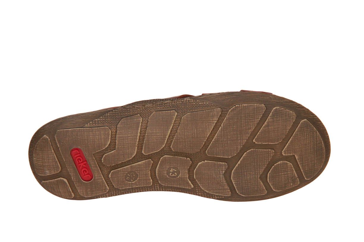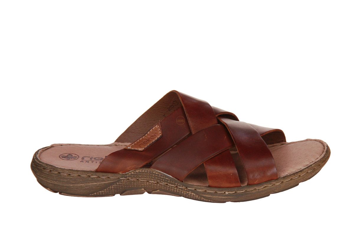 Deze bruin lederen herenslipper is van het merk Rieker.