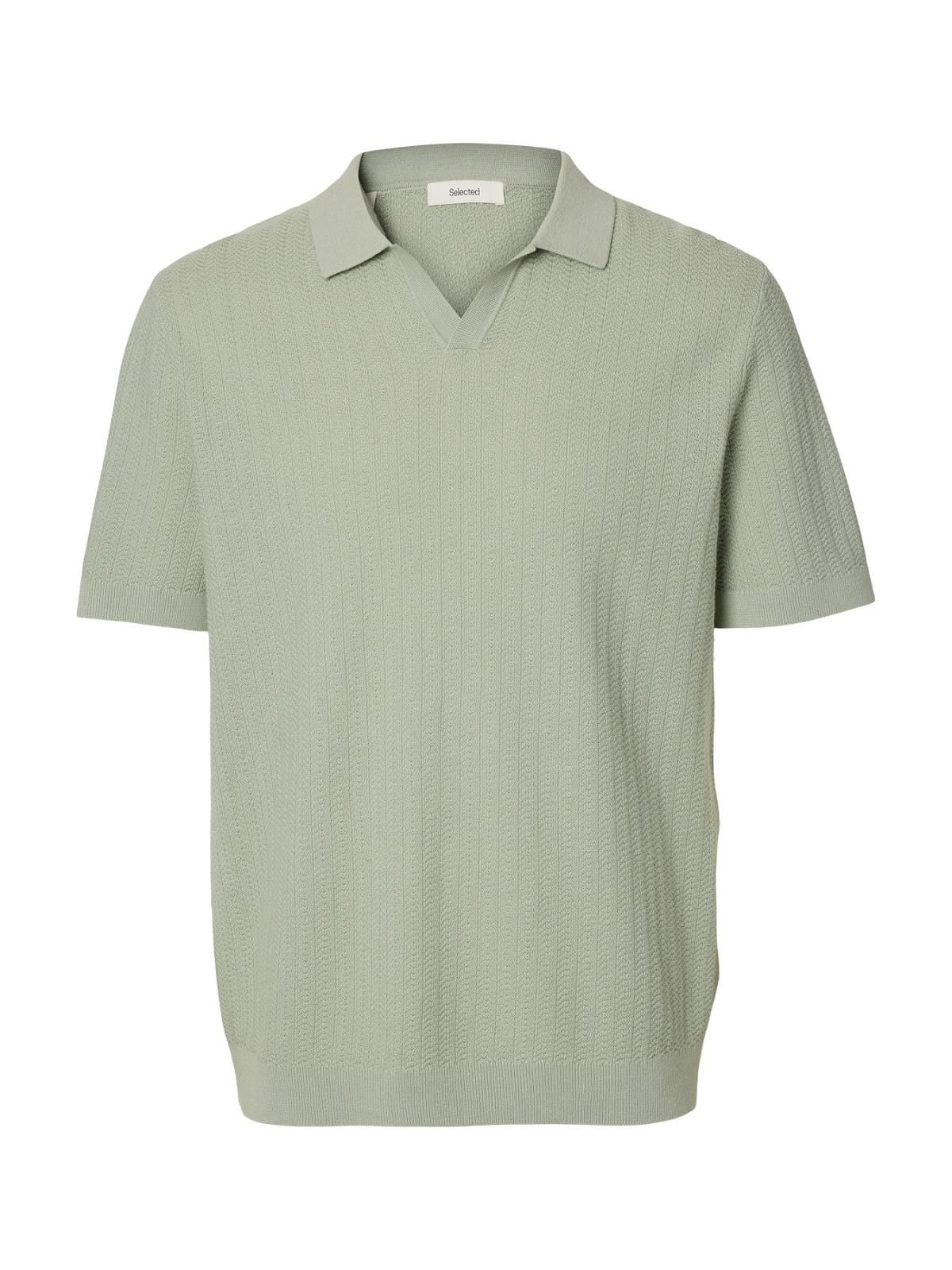SLH Mattis SS Linen Blend Struc Open Polo Aqua Gray  (16101575 AQUA GRAY) - Caramel (Sint-Job-in-’t-Goor)