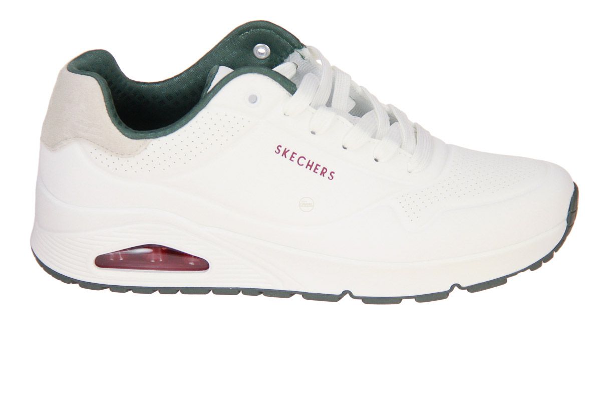 Deze wit synthetisch lederen herenschoen is van het merk Skechers.