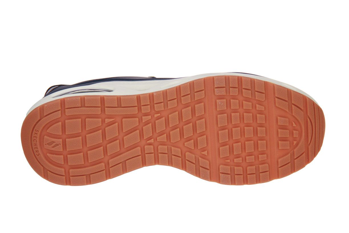 Deze blauw synthetisch lederen herenschoen is van het merk Skechers.