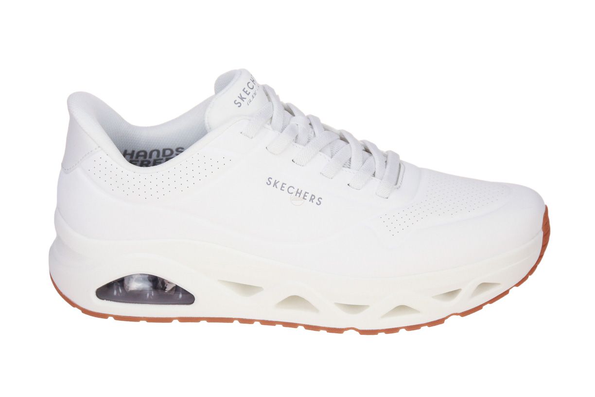 Deze wit synthetisch lederen herenschoen is van het merk Skechers.