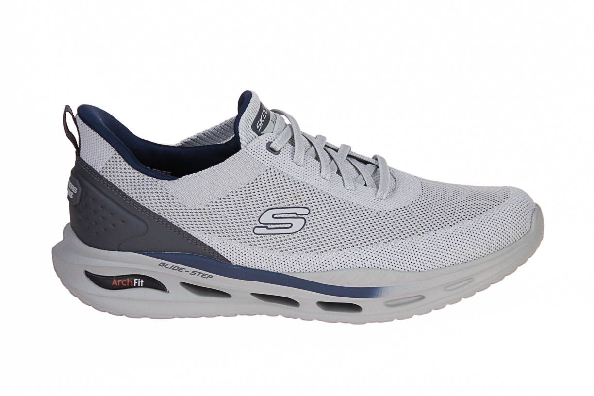 Deze grijs vegan herenschoen is van het merk Skechers.