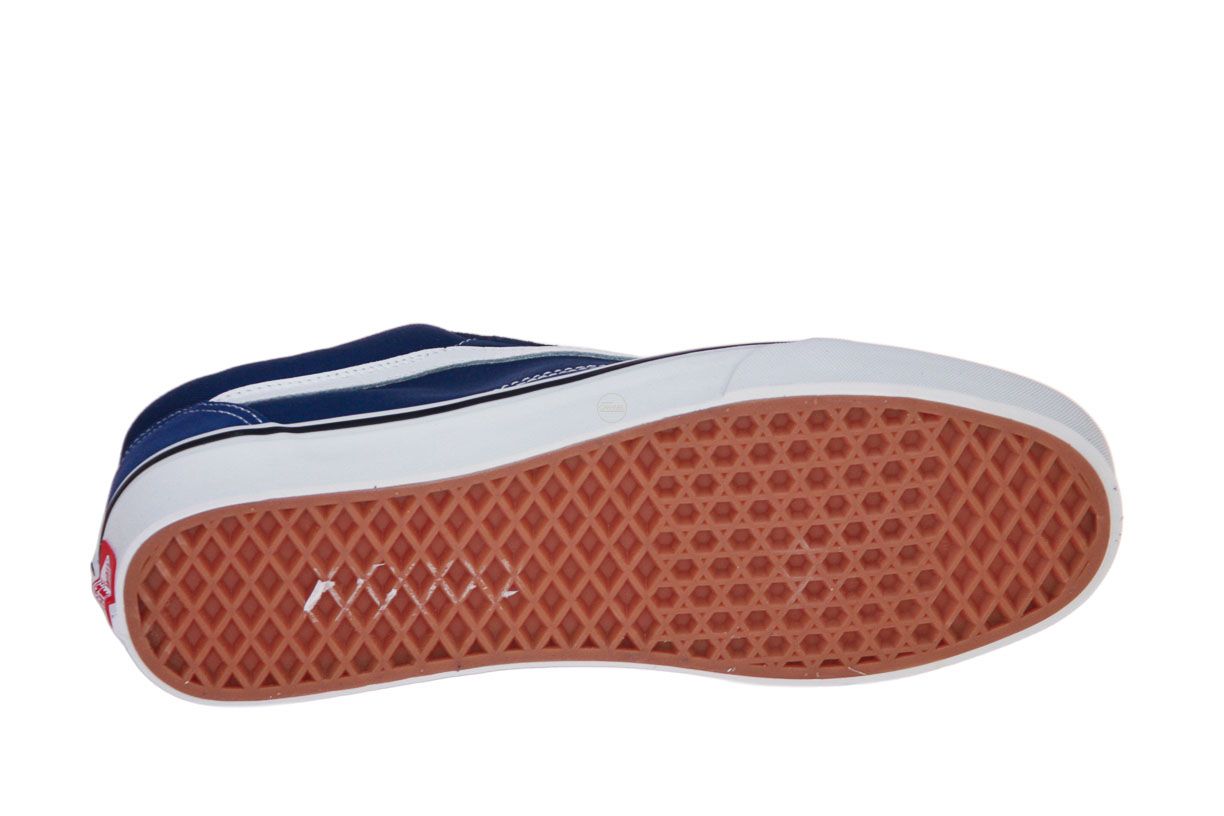 Deze blauw suède herenschoen is van het merk Vans.