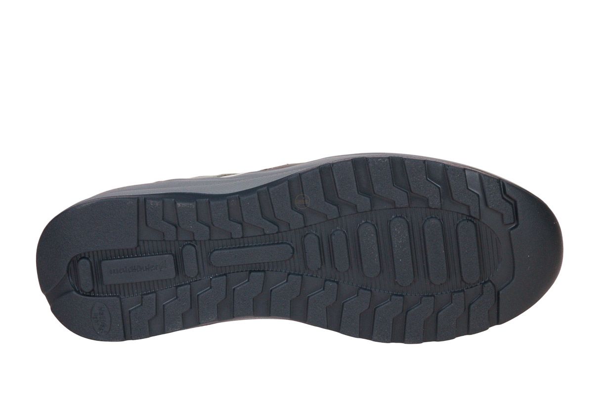 Deze wit lederen herenschoen met grijze accenten is van het merk Waldläufer. De binnenzool is uitneembaar, ideaal voor steunzolen.