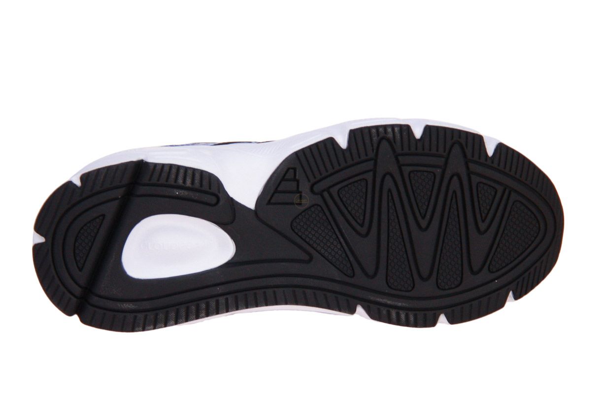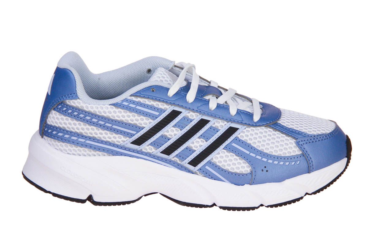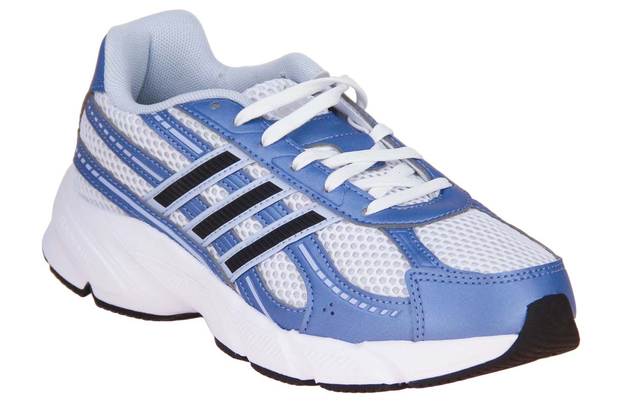 Deze blauw synthetisch lederen sneaker met witte accenten is van het merk Adidas.