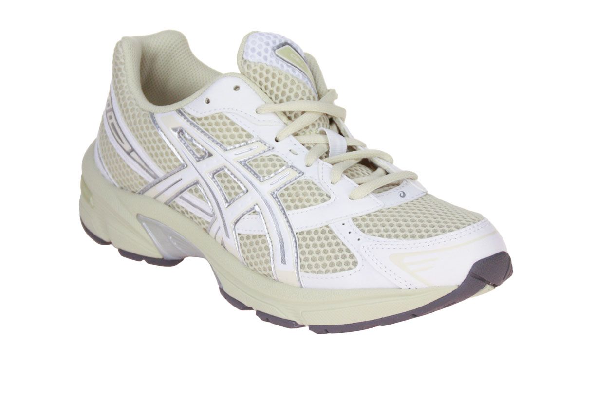 Deze offwhite textielen sneaker is van het merk Asics. De binnenzool is uitneembaar, ideaal voor steunzolen.