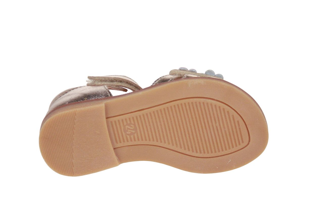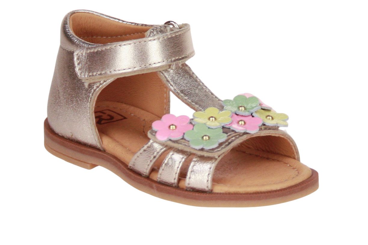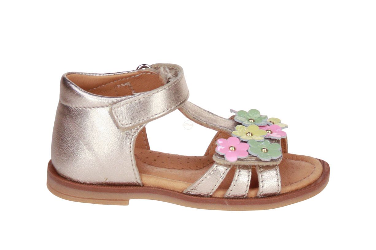 Deze goud lederen meisjessandaal met gesloten hiel is van het merk Babybotte.