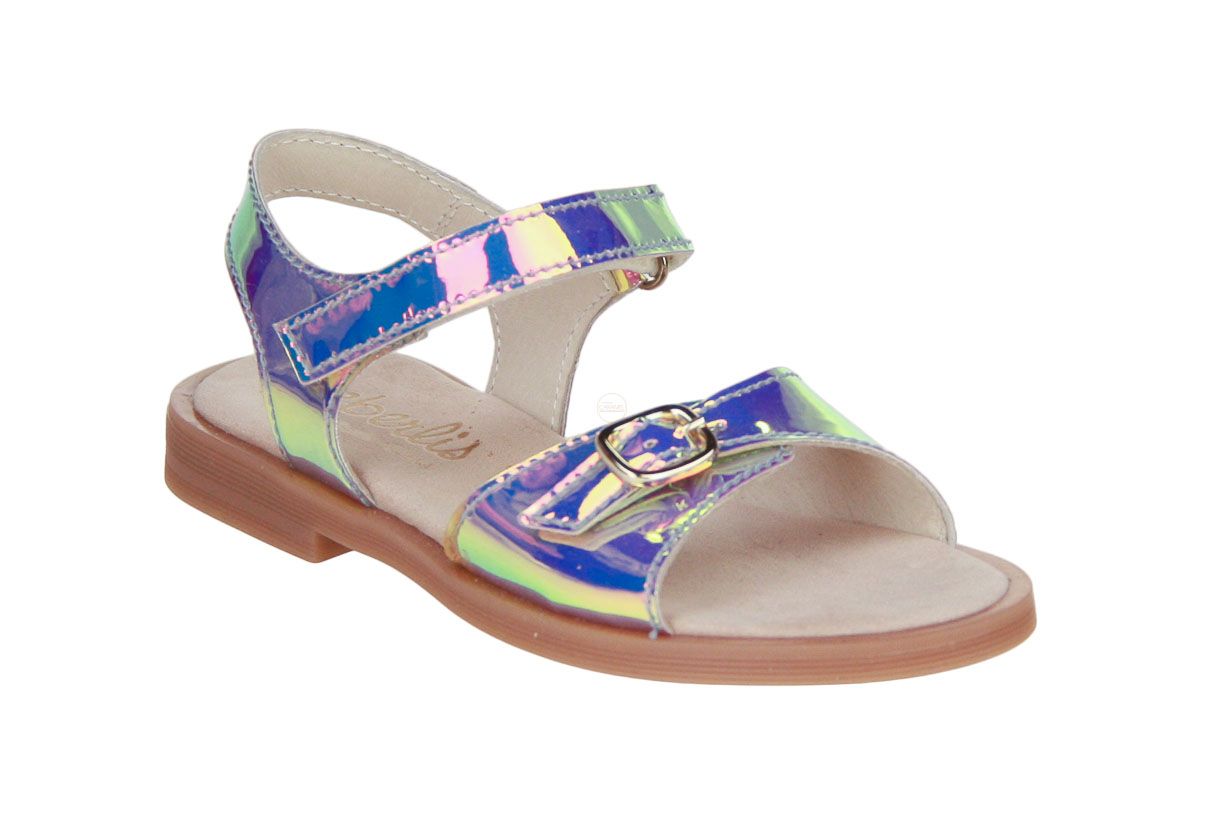 Deze zilver metallic lederen meisjessandaal is van het merk Beberlis.