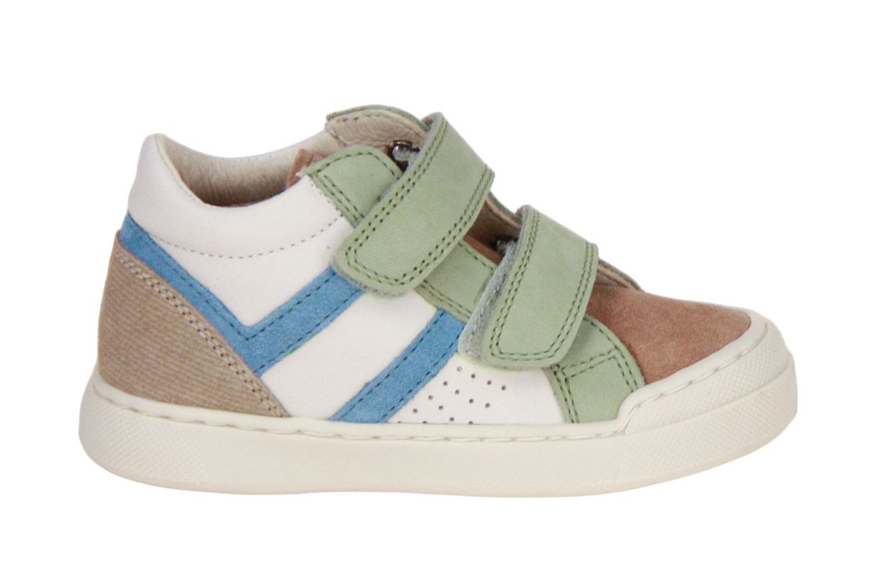 Deze bruin suède jongensschoen met beige lederen accenten is van het merk Falcotto. De binnenzool is uitneembaar, ideaal voor steunzolen.