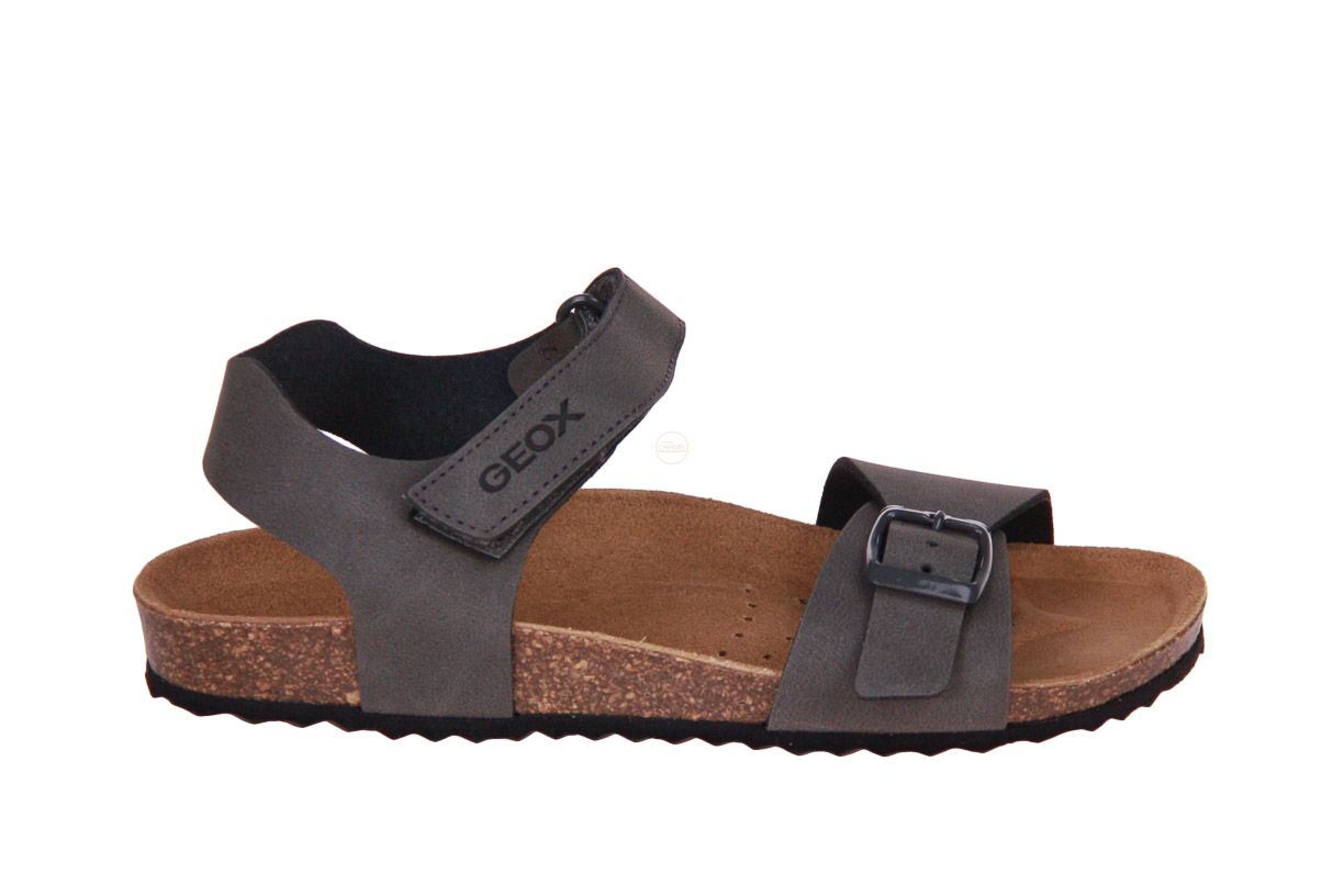 Deze grijs nubuck jongenssandaal is van het merk Geox.