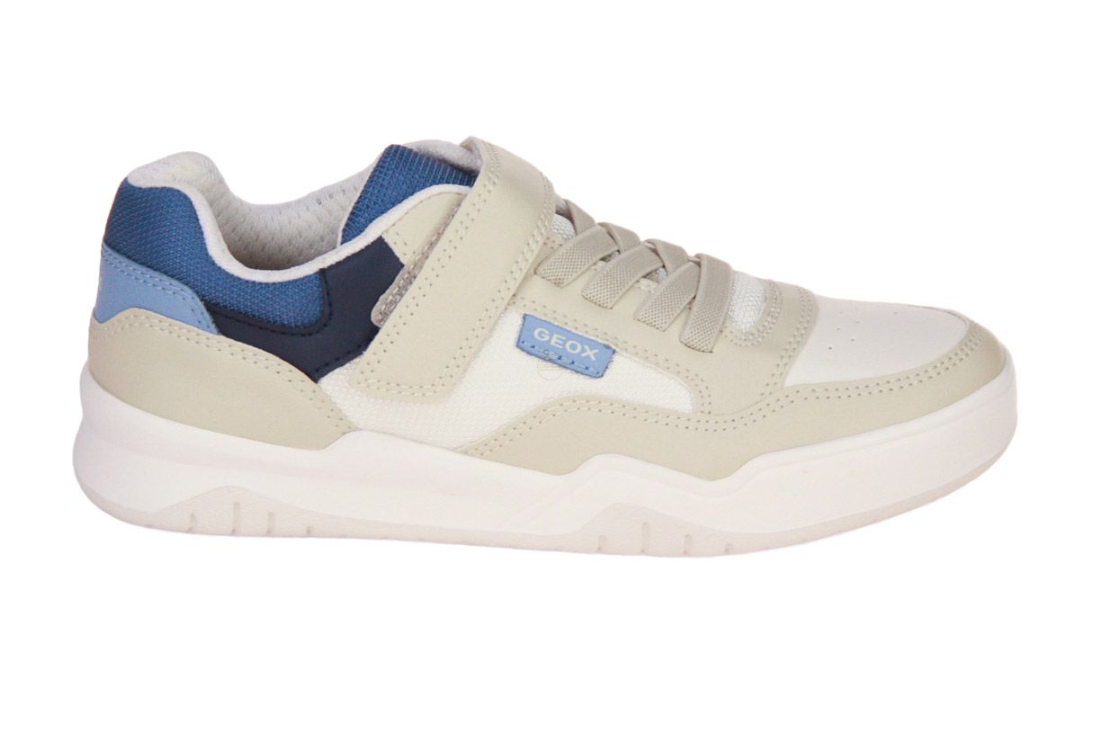 Deze beige synthetisch lederen jongensschoen is van het merk Geox. De binnenzool is uitneembaar, ideaal voor steunzolen.
