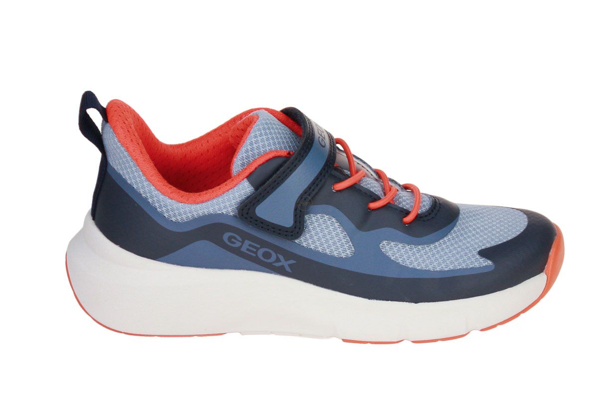 Deze blauw textielen jongensschoen is van het merk Geox.