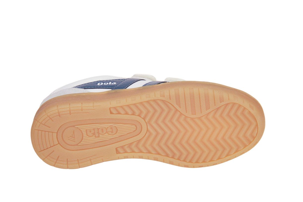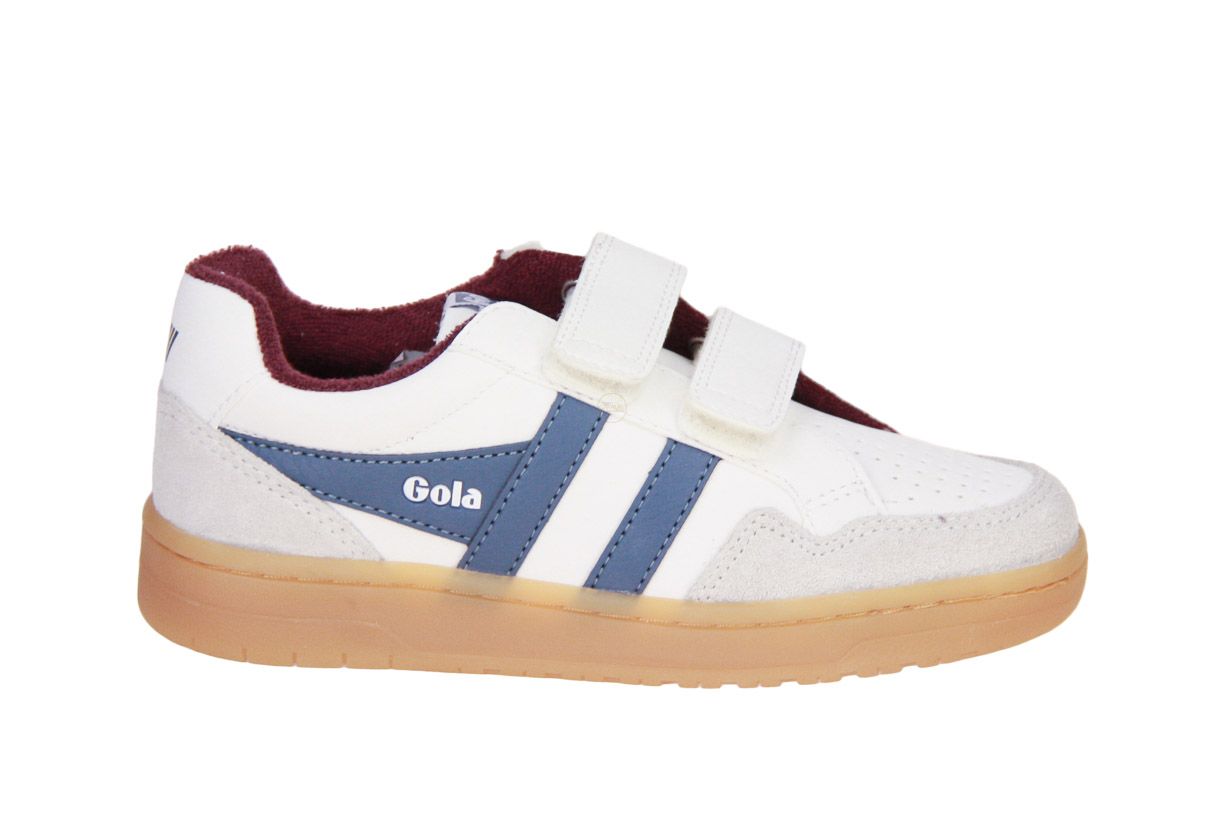 Deze wit lederen kinderschoen met blauw en bordo accenten is van het merk Gola.