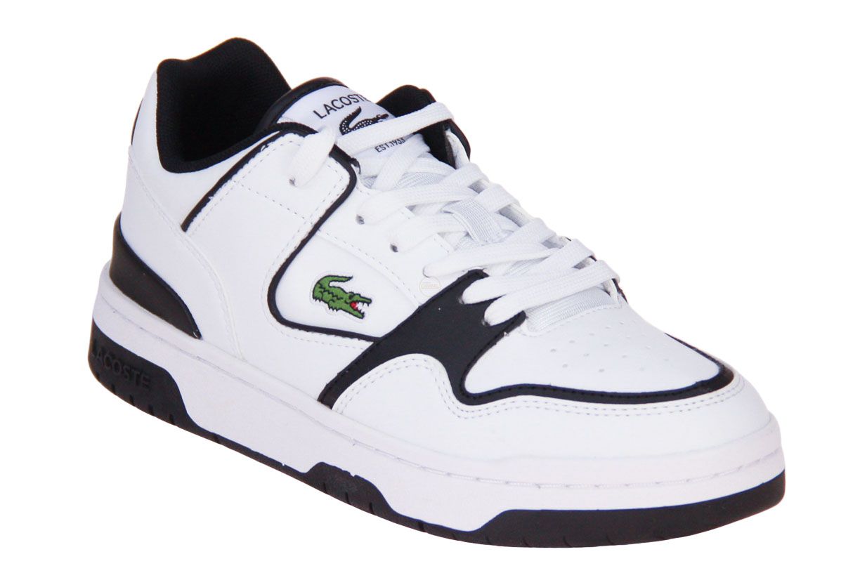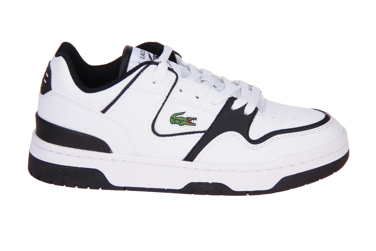 Deze wit synthetisch lederen schoen is van het merk Lacoste