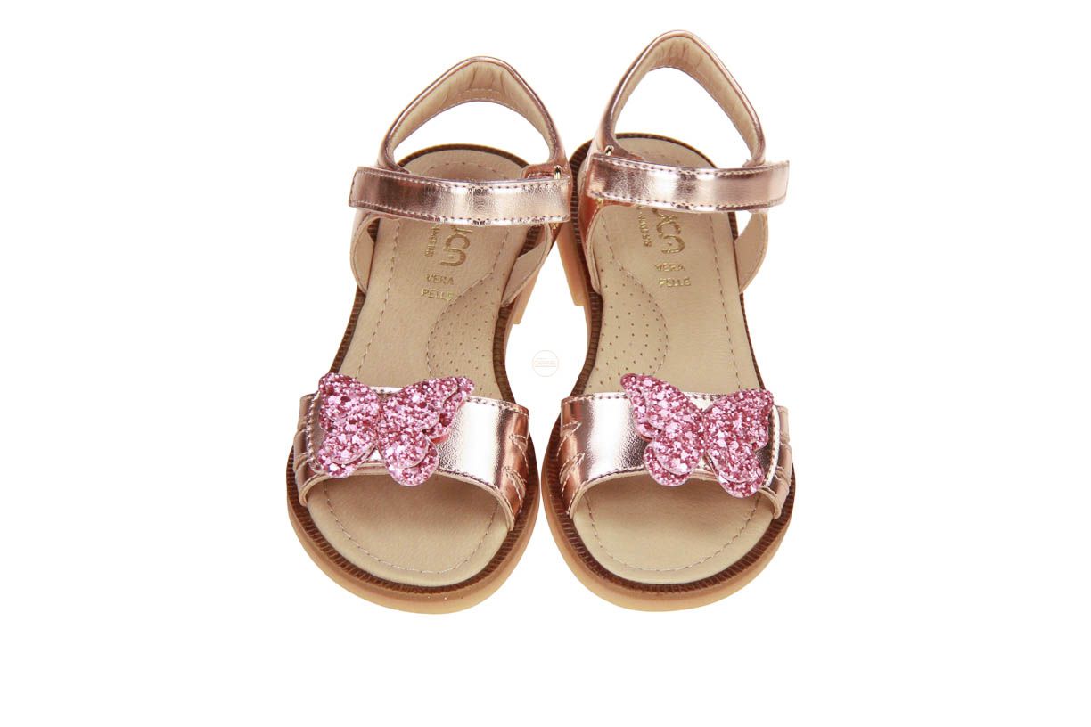 Deze roze metallic lederen meisjessandaal is van het merk Luca.