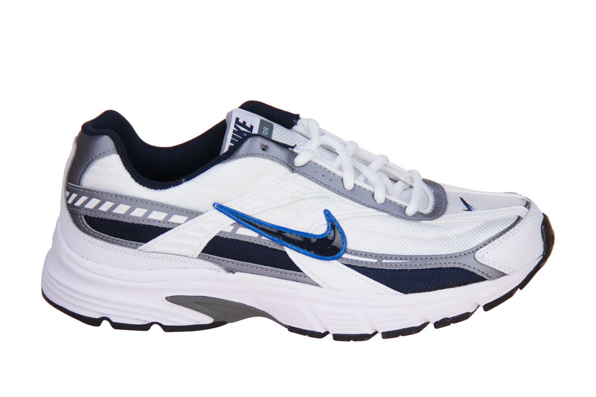 Deze wit textielen sneaker met grijze accenten is van het merk Nike.