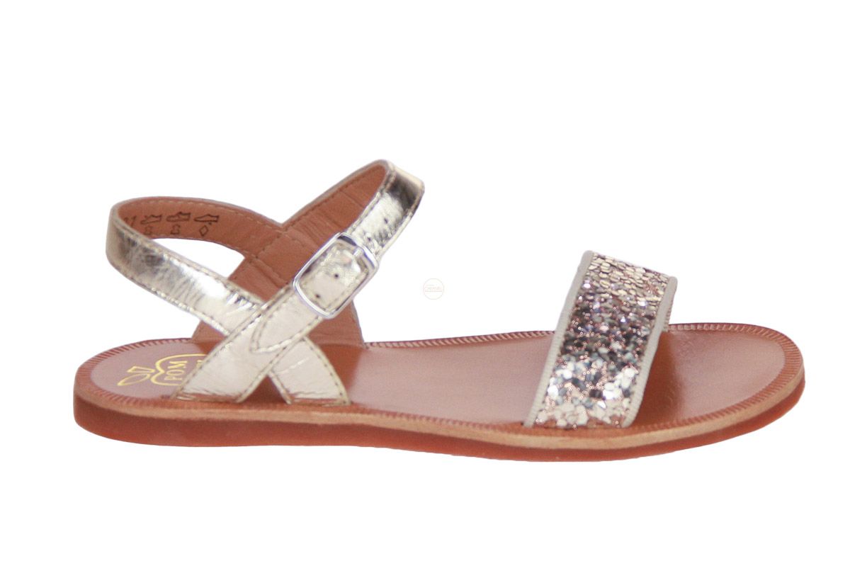Deze goud lederen meisjesschoen is van het merk Pom d'Api.